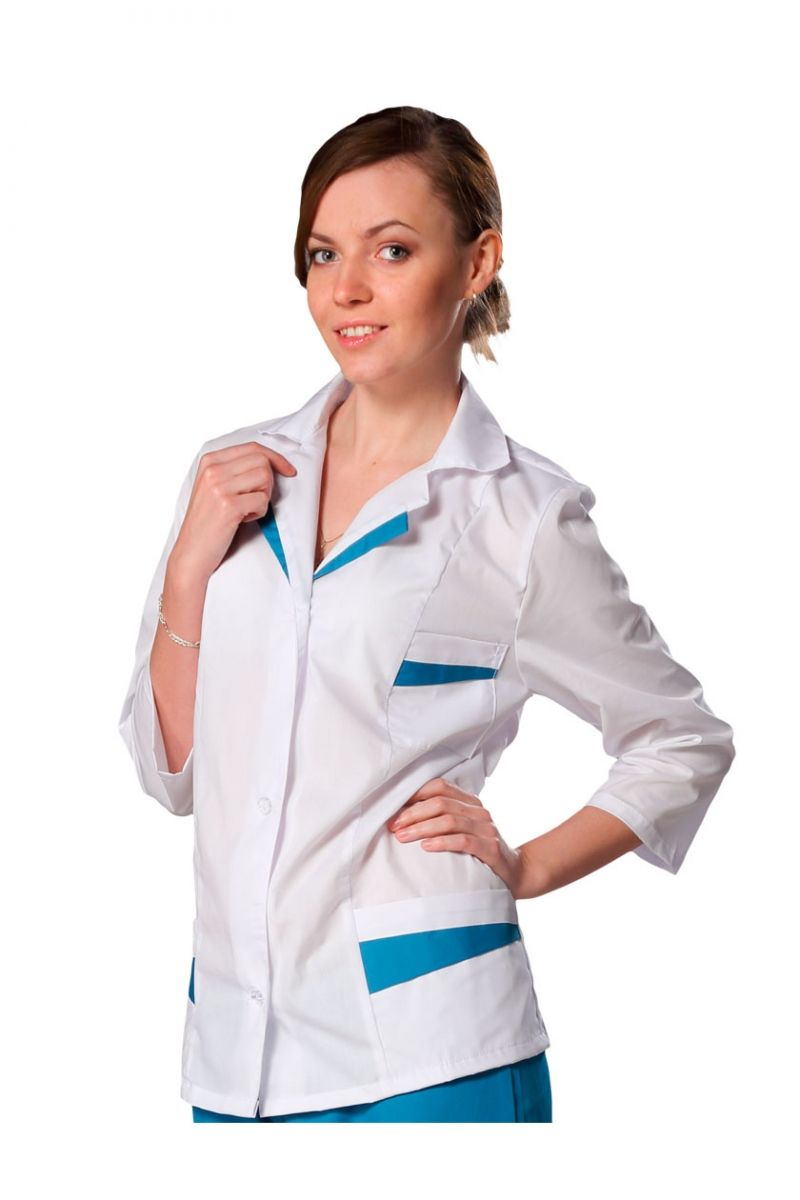 Блузка с центральной бортовой застежкой на пуговицы. Полочки с рельефами от линии плеча, с одним нагрудным и двумя нижними накладными карманами. Спинка с хлястиком. Рукава втачные одношовные. Воротник отложной, с лацканами с декоративными деталями. На карманах декоративные детали.