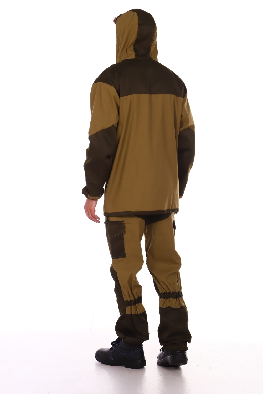Капюшон притачной по горловине, с кулисой по лицевому вырезу, стягивающейся шнуром. По передним частям рукавов внизу кулиса. Манжеты притачные, стянутые эластичной тесьмой