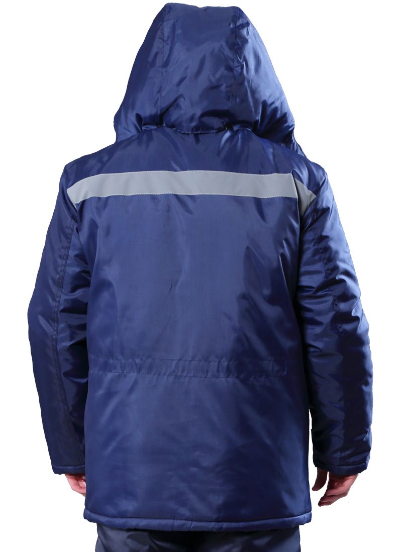 Куртка утепленная с центральной супатной застежкой на пуговицы. Воротник отложной из искусственного меха. Два нижних накладных кармана с клапанами. Рукава с трикотажными манжетами. Капюшон съемный на пуговицах. По линии талии расположена кулиса. СОП 50 мм расположен по шву притачивания кокеток.