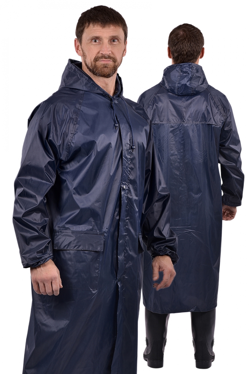 Плащ прямого силуэта, центральная застёжка на молнии, ветрозащитная планка на кнопках для дополнительной защиты от влаги.